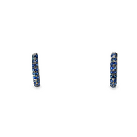 Elegant 14k white gold hoop earrings set with vibrant blue sapphires in a sleek inside-out design. A timeless pop of color perfect for everyday wear or layering.