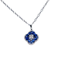 14K White Gold Sapphire & Diamond Cluster Pendant Necklace
