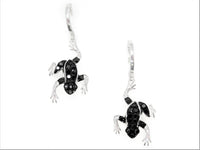 14K White Gold Black & White Diamond Frog Dangle Earrings