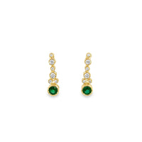 Elegant 14K yellow gold drop earrings featuring vivid green emerald centers accented by graduated round diamonds. A timeless vertical design with rich color contrast and brilliant sparkle.