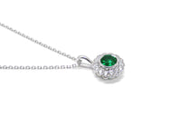 14K White Gold Emerald & Diamond Halo Pendant Necklace