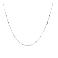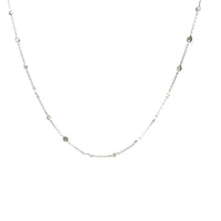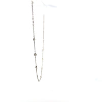 Crafted in 18K white gold, this diamonds by the yard necklace features bezel-set pear-shape diamonds spaced along a delicate chain.