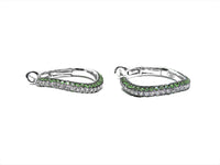 18K White Gold Green Tsavorite and Diamond Hoop Earrings