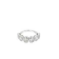 The bezel design offers a modern, clean look while securely framing each diamond, enhancing both brilliance and durability. The evenly sized stones create a continuous line of sparkle across the finger, delivering a bold yet refined presence.